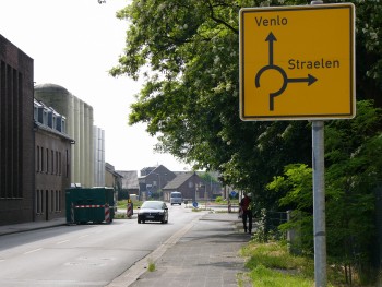 an einen Kreisverkehr kommen; hier geht es geradeaus weiter Richtung Venlo / Gartenbaugebiet Nord.